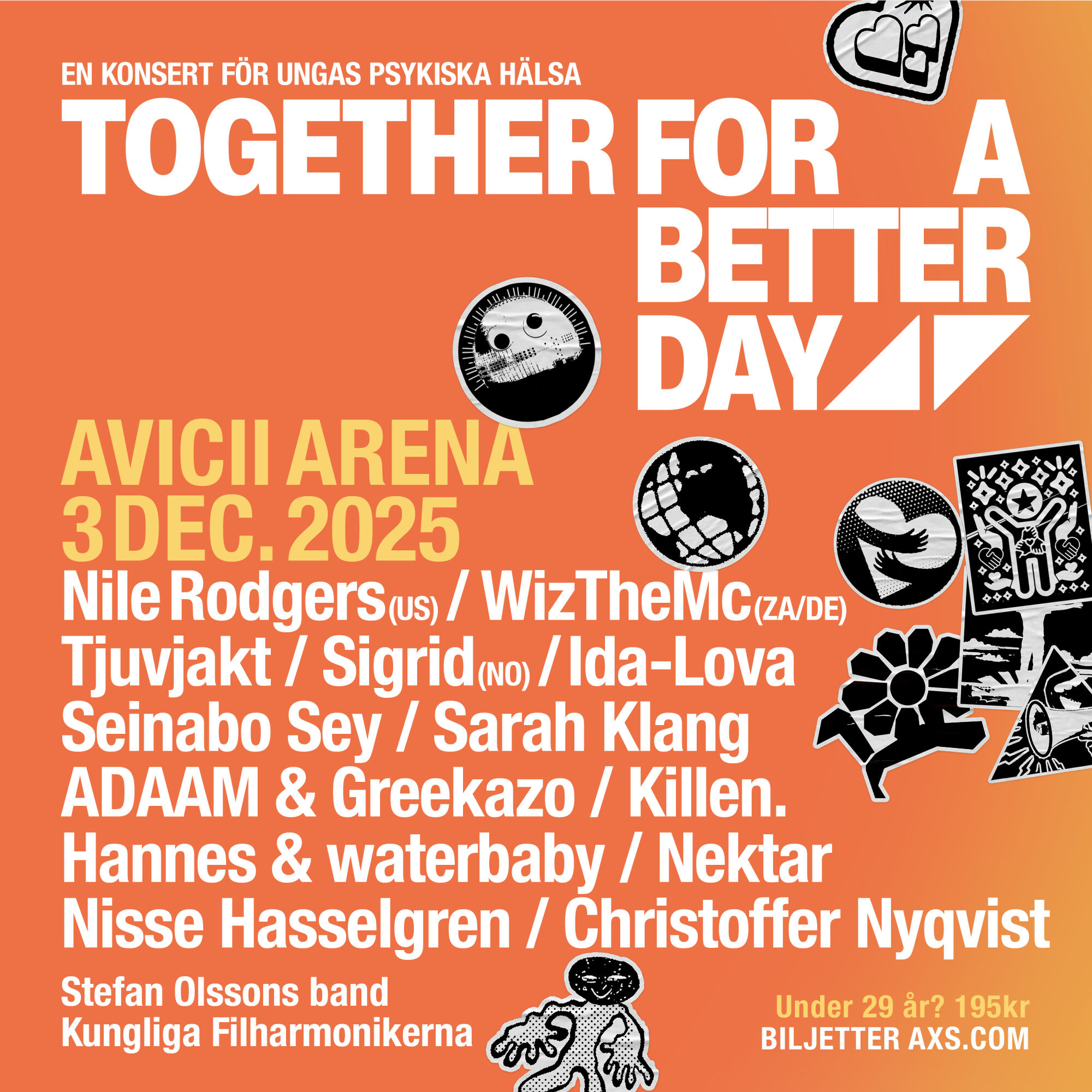Since its premiere in 2021, Together For A Better Day has emerged as one of the most significant concerts in Sweden - an evening where exclusive performances and unexpected musical encounters create an experience that touches far beyond the arena. With the support of the Royal Swedish Philharmonic Orchestra and conductor Stefan Olsson, the concert is elevated to a world-class production.
